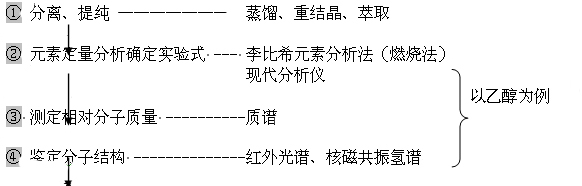 结构:首先介绍人们研究有机化合物的一般步骤和方法,使学习者有个总体的认识;然后再分步按顺序介绍具体的研究内容和研究方法;从介绍元素分析开始以未知物A(乙醇)为例介绍运用化学和物理方法确定有机物结构的一般步骤:有机物最简式→相对分子质量→官能团→分子结构。整体逻辑结构如下图: