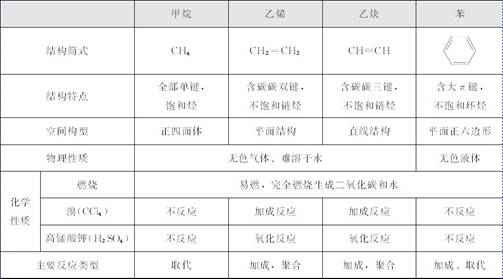 以烷、烯、炔和芳香烃的代表物为例,比较它们的组成、结构、性质上的差异。 |