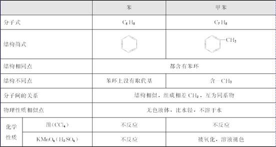 (2) 通过对比苯和苯的同系物的结构和性质,进一步了解结构决定性质这一研究元素化合物的基本学科思想。