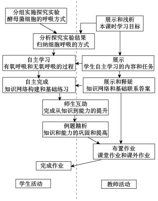 本节课主要从一个探究实验入手,通过分析探究实验,了解细胞呼吸的类型和产物,让学生有一个初步的感性认识,然后上升到一个理性认识,符合学生的认知规律。