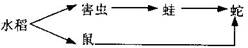 如果有人大量捕捉蛙,短期内对该个生态系统造成的影响是 A.有利于生态系统的平衡 B.水稻虫害严重 C.蛇的数量迅速增加 D.鼠的数量迅速增加