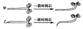 提示:云母片不影响植物生长,但生长素不能透过。将两组幼苗水平放置培养一段时间后,两组幼苗的生长情况如下图所示。