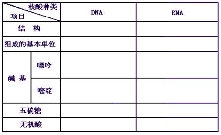 一、细胞中的两种核酸的比较(板书,表略,出现在学案和课件上)