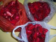 很多老师认为,本实验最困难的事情是无法准备相应的实验材料,因为无法获得充足的鲜玫瑰花瓣。其实不然,学生中就有很多的资源可以利用。笔者介绍一个真实的教学案例,本人在带领学生做该实验之前也有与大多数老师一样的顾忌,从哪里弄到哪么多的鲜玫瑰花瓣呢?我在征询学生意见时,学生告诉我,他们有办法,果不其然,第二天,仅一个小组的同学就轻松地弄来三大包鲜玫瑰花瓣(见右图)。原来,学生到学校附近的鲜花店,向店主讲明原因,让店主将卖玫瑰花时去掉的外层花瓣留下来供他们实验,因这些花瓣已没有利用价值,店主当然乐意支持学生的实验活动。通过这件事情,让我明白了学生具有很强的实践能力,我们应该充分利用学生的潜能,利用各种有效的教学资源来为我们的教育教学服务。