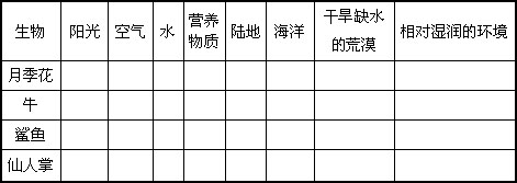(6)知识迁移:任举一种熟悉的生物,说说它的生存也必须具备这些条件吗。