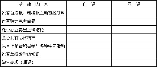 注:评价用☆☆☆、☆☆、☆表示。得30颗星以上的为优秀;得25至30颗星的为良好;25颗星以下的为一般。综合表现由教师参考自评和互评以及结合老师的观察填写。评价表作为期末总评的参考。