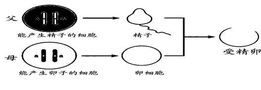 生:男性能产生二种精子,它们与卵细胞的结合机会是均等的,只有含Y染色体的精子与卵结合了才能发育成男性,而含X染色体的精子与卵细胞结合能发育成女性。