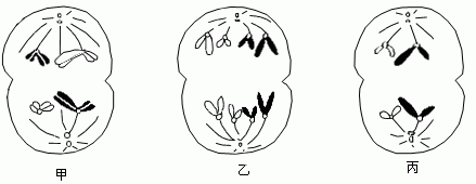 下图中的甲乙丙分别表示某种生物(假定体细胞中只含两对染色体)的三个正在分裂的细胞,请根据图回答问题。甲图表示______分裂的______时期;乙图表示______分裂的______时期;丙图表示______分裂的______时期。