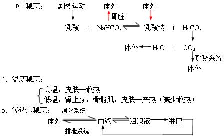 (1)代偿性调节反应:内环境的任何变化,都会引起机体自动调节组织和器官的活动,并产生一些反应,来减小这种变化.