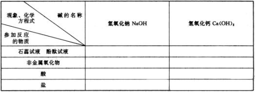 当表格中的化学性质—一填充后,教师应予以总结,使学生从对具体物质的认识上升到对碱这一类物质的认识。