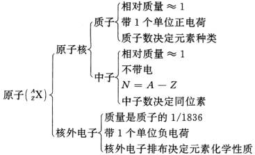 (1)掌握构成原子的三种微粒:原子由原子核和核外电子构成,原子核在原子的中心,由带正电的质子与不带电的中子构成,带负电的电子绕核作高速运动。也就是说,质子、中子和电子是构成原子的三种微粒。在原子中,原子核带正电荷,其正电荷数由所含质子数决定