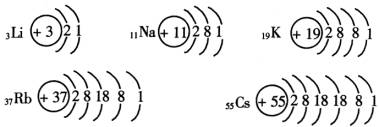 作为金属族的代表物碱金属族也有相同的规律。原子结构如下: