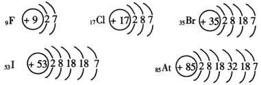 随着原子序数从9到85,原子核外电子层数从2层到5层,呈递增趋势(原子的半径逐渐增大),最外层电子数都为7个。