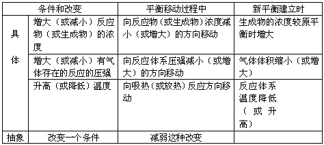 3.勒夏特列原理的教学:在明确了浓度、压强、温度的改变对化学平衡的影响以后,可采用归纳法,突破对勒夏特列原理表述中“减弱这种改变”含义理解上的困难: