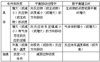 3.勒夏特列原理的教学:在明确了浓度、压强、温度的改变对化学平衡的影响以后,可采用归纳法,突破对勒夏特列原理表述中“减弱这种改变”含义理解上的困难: