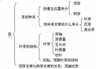 关于叶芽的结构,要分发给学生一些叶芽,让他们在课堂上亲自动手,把发给的叶芽纵切开,用放大镜观察它的结构。这一部分内容的讲授和观察的最终目的是,让学生理解叶芽就是未发育的枝。