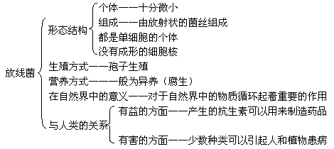 1、放线菌结构特点及与人类的关系是本章的重点知识,通过学习放线菌细胞结构特点,让学生与前面所学过的植物细胞、细菌细胞结构进行比较,找出它们在细胞结构上的相同点及显著区别。