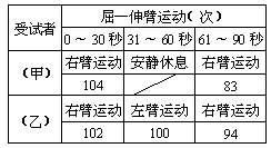 (1)先由甲同学用右臂做半分钟尽量快速的屈—伸臂运动,然后停止下来休息半分钟,接着再用右臂做半分钟屈—伸臂运动。其他同学观察并记录甲同学这先后二次屈臂运动的次数。