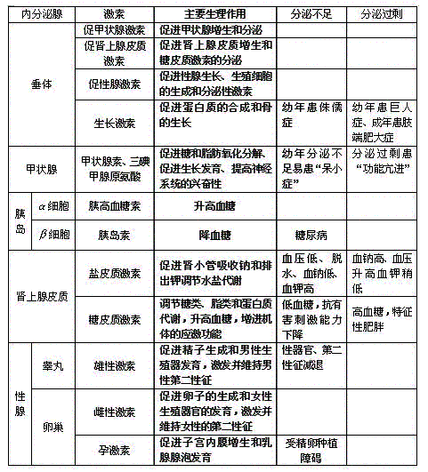 (四)关于人体主要的内分泌腺的位置和功能及分泌失调表现的知识点讲解