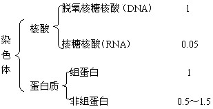 真核生物染色体的主要成分是核酸和蛋白质,其大致比例如下: