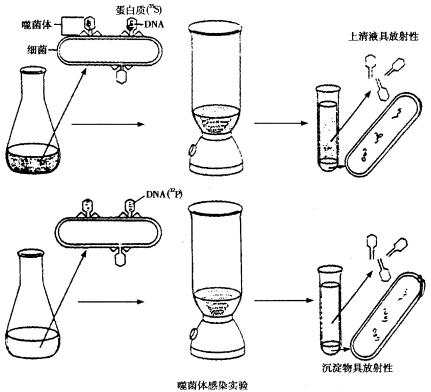 (下图)标记的噬菌体感染细菌,通过搅拌和离心得到上清液(噬菌体体外壳)和沉淀物(细菌及进入细胞内的噬菌体DNA),并检测放射性,上清液具