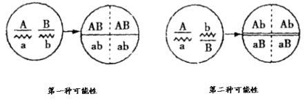 。但对于一个初级精母细胞进行减数分裂时,只能采用其中的一种排列方式,这样只能产生两种类型的配子。
