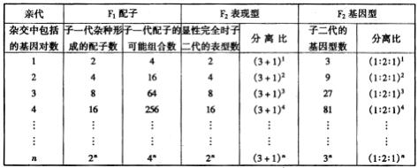 10.杂交中包括的基因对数与基因型和表现型的关系
