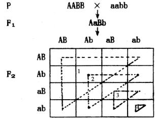 在十六格的基因型和表现分布就很有规律。如下图所示。
