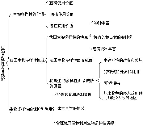 生物多样性的间接使用价值,是维系生态平衡和生态系统的稳定。生物多样性应从三个层次——遗传多样性、物种多样性、生态系统多样性上讲解,让学生理解生物多样性的价值,并分析得出“生物多样性是人类赖以生存和发展的基础”的结论。