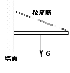 2、合力产生的分力效果,可以让学生从日常现象入手(如下图所示).由于物体的重力,产生了两个力的效果,一是橡皮筋被拉伸,一是木杆压靠在墙面上,教师可以让学生利用铅笔、橡皮筋,用手代替墙面体会一下铅笔重力的两个分效果.
