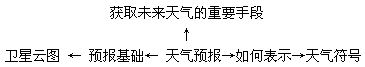 本节从学生比较熟悉的天气预报谈起,并且按照平时电视节目中播放的顺序,依次介绍了卫星云图、天气符号和简易的天气预报图,着重强调对这些图的判断、解读。由于这些内容贴近生活,联系实际,具有一定的趣味性,所以可以激发学生的兴趣,吸引他们继续进行后几节的深入学习。
