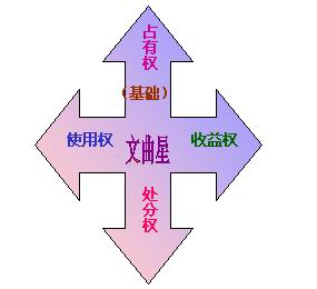 第一框“公民合法财产所有权受法律保护”。财产所有权是公民经济生活最主要的一项权利,它是本课教学的起点,它分为两部分内容。一是“什么是财产所有权”,二是“财产所有权的法律保护”,其中“什么是财产所有权”既是本框教学的重点,又是本框教学的难点。其理由是:财产是学生熟悉的现实事物,但财产所有权作为法律名词,学生没有接触过,理解起来有一定难度。其次,财产所有权包括占有权、使用权、收益权、处分权,理解起来有一定困难。最后精神产品也是财产,对初二学生来讲不能深入理解。鉴于这一教学内容的难度,尤其是对十三四岁的青少年,必须巧设情景,从学生熟悉的物资引出“财产”,进而通过学生发言、讨论,归纳出财产所有权概念。教师可以用“希望工程”物资清单的形式分发给每个学生,然后请同学分析出清单中“物资”财产,然后通过让学生举例,验证所学知识,加深对知识的理解,接着可以用图示方法讲解“财产所有权”的含义,如下图
