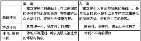 1、法治与人治:划分二者的最根本标志是在法律与个人的意志发生冲突时,是法律的权威高于个人意志还是个人意志凌驾于法律之上。