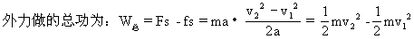 可见,外力对物体做的总功等于物体在这一运动过程中动能的增量.其中F与物体运动同向,它做的功使物体动能增大;f与物体运动反向,它做的功使物体动能减少.它们共同作用的结果,导致了物体动能的变化.