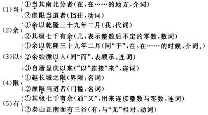 (3)至于泰安(古义:动词“至”和介词“于”连用,到,到达。今义:表示另提起一件事情)