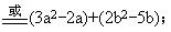 解:(1)原式=(3a2-2a)+(-5b+2b2)