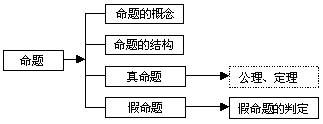 命题的定义包括两层涵义:①命题必须是一个完整的句子;②这个句子必须对某件事情做出肯定或者否定的判断.即命题是判断某一件事情的句子.在语法上,这样的句子叫做陈述句,它由“题设+结论”构成.
