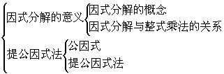 我们曾经学习过多项式的运算.多项式的运算是两个多项式间根据运算的法则,进行加 、减、乘、除等运算,计算出表示和、差、积、商的多项式.在这个意义上说,多项式的因式分解就不是一种运算,而是把多项式转换成另一种形态—即整式的乘积的形态;所以,我们只能说,因式分解是一种多项式的变形.如,多项式