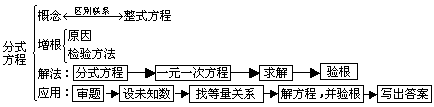 本节重点是可化为一元一次方程的分式方程求解中的转化,列方程解应用题。解分式方程的基本思想是:设法去掉分式方程的分母,把分式方程转化为整式方程,这是分式方程求解的关键,因此转化过程中首先要找方程两边的最简公分,找最简公分母的方法和分式通分时相同。求解分式方程的具体步骤:
