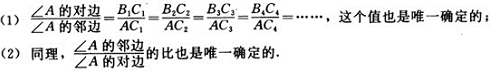 锐角的正切、余切与它的正弦和余弦的规定是一样的:当一个锐角确定了,那么这个锐角所在的直角三角形虽然有无穷多个,但它们都是彼此相似的。如上图,当