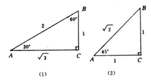 角的直角三角形三边的比;如图(1)和图(2)所示。