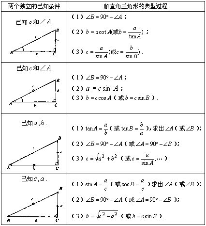 4. 直角三角形的解法可以归纳为以下4种,列表如下: