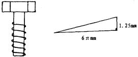 我们知道,机器上用的螺丝钉问题可以看作计算问题,而圆柱的侧面可以看作是长方形围成的(如图).螺纹是以一定的角度旋转上升,使得螺丝旋转时向前推进,问直径是6mm的螺丝钉,若每转一圈向前推进1.25mm,螺纹的初始角应是多少度多少分?