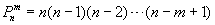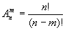 后要分析这个公式的构成特点,以便帮助学生正确地记忆公式,防止学生在“n”、“m”比较复杂的时候把公式写错.这个公式的特点可见课本第229页的一段话:“其中,公式右边第一个因数是n,后面每个因数都比它前面一个因数少1,最后一个因数是