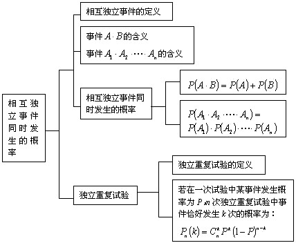 重点是相互独立事件及其同时发生的概率和独立重复试验,难点是建立在n次独立重复试验中共事件恰好发生k次的概率计算公式.