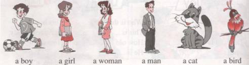 4.利用单词卡片man, woman, girl, boy, cat等,让学生运用代词来进行组句练习。