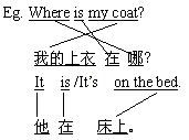 b. 介词in, on, near, behind, under的用法; 可组成介词短语。