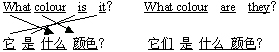然后将黄色片上覆盖红色片再问:What colour is it? It's orange.