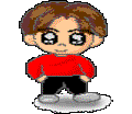 The boy who is smiling / who is naughty / has brown shoes.