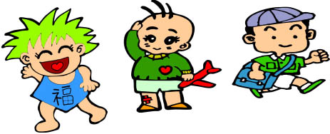 The boy who has a big mouth / has not shoes / has long hairs / with laughing.